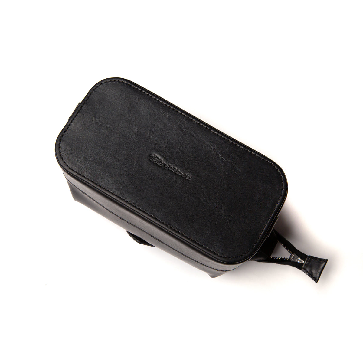 Traditional style, British made small black leather wash bag. Comes with single zip opening. This washbag has a wipeable interior for easy cleaning.